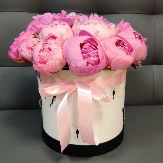 11 пионов в шляпной коробке