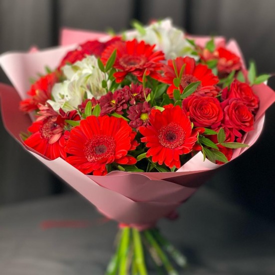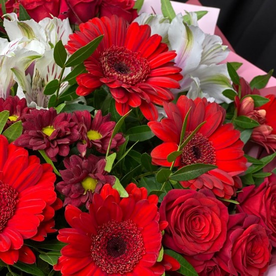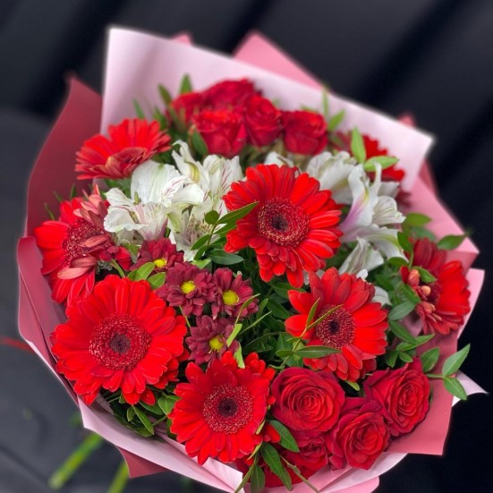 Букет «Хризантема, гербера и альстромерия»
