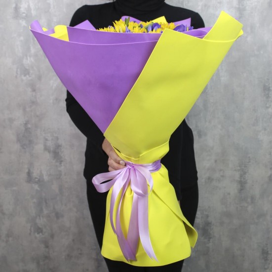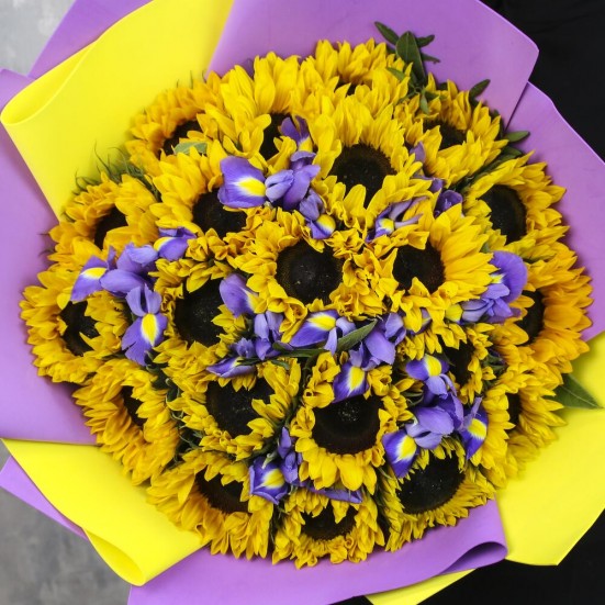 Букет «Ирисы и подсолнухи»