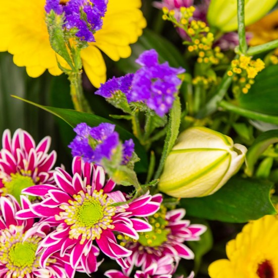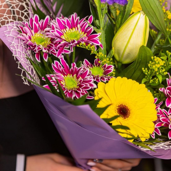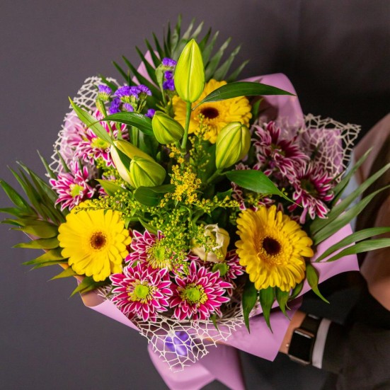 На прошлой неделе купил жене этот букетик. Ей очень понравился. В жизни очень красивый. Цветы стоят до сих пор.