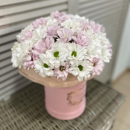 Хризантемы в шляпной коробке в Комсомольске-на-Амуре