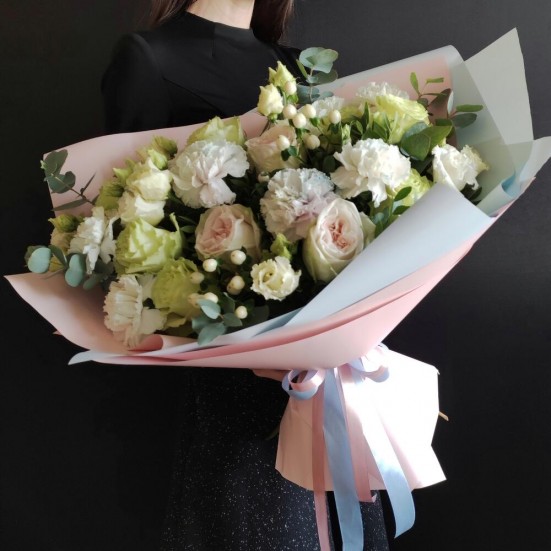 На прошлой неделе купил жене этот букетик. Ей очень понравился. В жизни очень красивый. Цветы стоят до сих пор.